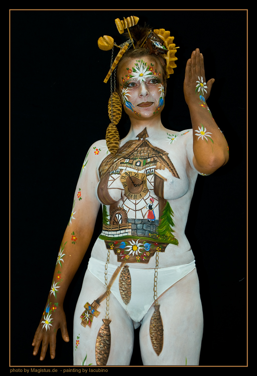 Kuckucksuhr 2 – Bodypainting – Photo by Marcus Locher – Painting by Iacubino – Model Leah