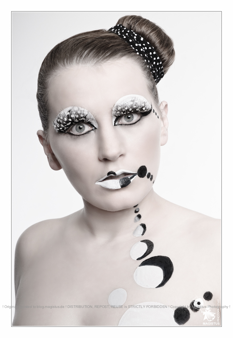 Bei diesem Bild bitte unbedingt einmal oben auf das Foto klicken um die volle Größe zu sehen! Das Foto ist bei einem komplett improvisierten Shooting entstanden. Wir hatten einfach Lust was zusammen zu machen und haben uns als Accessoire Malerabdeckfolie ausgesucht. Tja, und das ist dabei raus gekommen. Dank dem super coolen blauen Metallic Makeup (vom Model selbst geschminkt) und zwei blauen Effekt-Blitzlichtern die links und rechts vom Model auf dem Boden gelegen haben, kam dieser schöne bläuliche Effekt zustande. Das Hauptlicht von vorne in Bodennähe kam von einem Beauty-Dish. Ich habe dann die Haut noch etwas in Lightroom entsättigt und eine normale Beauty-Retouche durchgeführt.