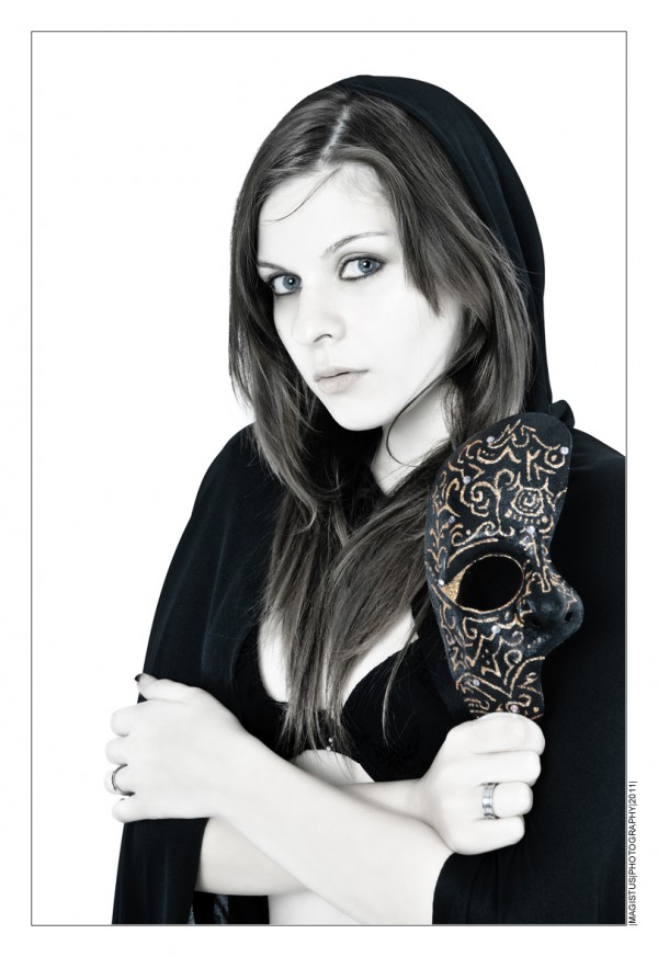 Das dritte Bild aus der Mask-Shooting-Reihe mit Model TigerVamp. Diesmal als Portrait in klassischer HighKey-Bearbeitung und etwas ColorKey um das Gold der Maske hervor zu heben.